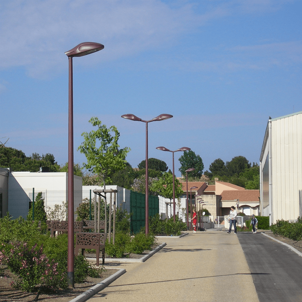 R-Light is a durable and efficient cast aluminum luminaire designed for roadway lighting applications. Its streamlined oval shape not only enhances visual appeal but also features a tool-free opening system with an automatic power disconnection, conveniently located at the rear of the fixture for easy maintenance.